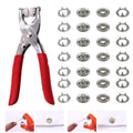 This high-quality metal hand press snap button machine is perfect for fixing buttons on a wide range of items like garments, bags, and banners. Built from durable metal, it offers long-lasting use and a user-friendly design that reduces hand pressure. Compact and lightweight, it's easy to store and handle. The kit includes 25 snap buttons, making it a versatile tool for any project. Ensure proper alignment to avoid damage during use.